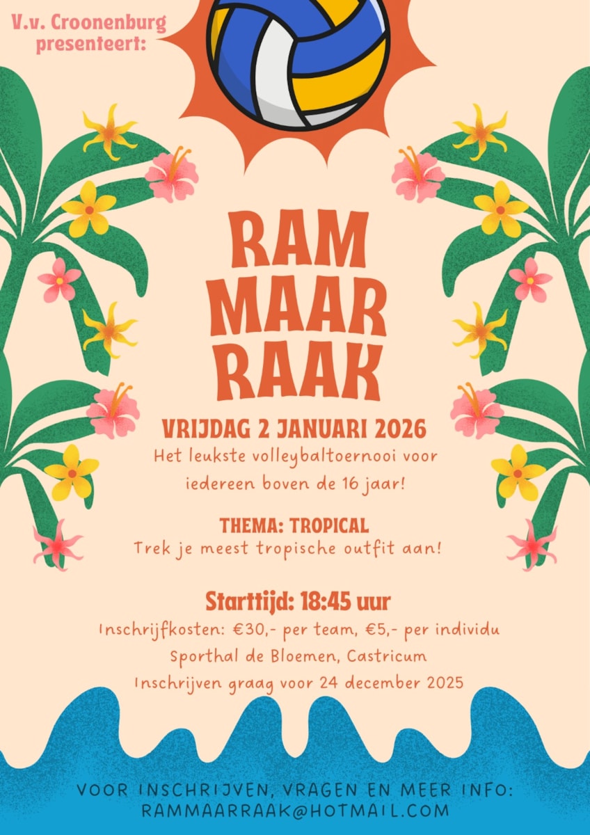 Inschrijven kan meteen via rammaaraak@hotmail.com – als team of individueel – maar wacht niet te lang, want… Vol = Vol!